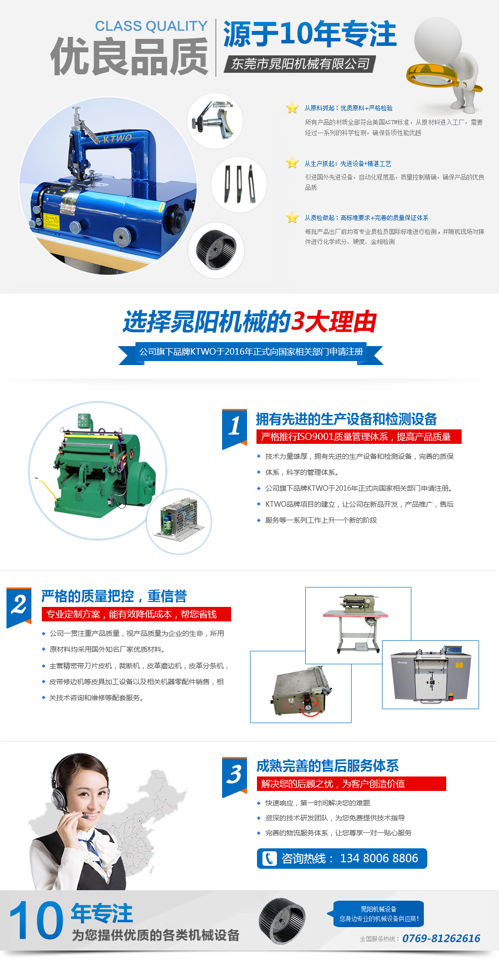 東莞市晁陽(yáng)機(jī)械有限公司(簡(jiǎn)稱(chēng)晁陽(yáng)皮具機(jī)械),是一家由2008年收購(gòu)整合原臺(tái)灣臺(tái)北縣晁陽(yáng)實(shí)業(yè)有限公司后重組而來(lái)的獨(dú)資公司。重組后注冊(cè)地位于廣東省東莞市。經(jīng)營(yíng)各類(lèi)皮具機(jī)械,鞋業(yè)機(jī)械。主營(yíng)精密帶刀片皮機(jī),裁斷機(jī),皮革磨邊機(jī),皮革分條機(jī),皮帶修邊機(jī)等皮具加工設(shè)備以及相關(guān)機(jī)器零配件銷(xiāo)售,相關(guān)技術(shù)咨詢(xún)和維修等配套服務(wù)。